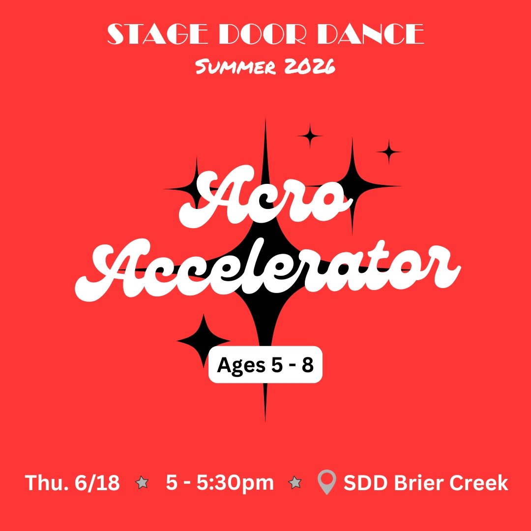 Acro Accelerator: Ages 5 - 8 | June 18 Thursday, June 18, 2026 5:00 PM 5:30 PM Stage Door Dance - BC 2720 Godley Lane Raleigh, NC 27617 USA (map) Google Calendar ICS Register Now