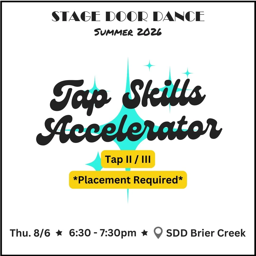 Tap Skills Accelerator (Placement Required) Tap II/III: Aug. 6 Thursday, August 6, 2026 6:30 PM 7:30 PM Stage Door Dance - BC 2720 Godley Lane Raleigh, NC 27617 USA (map) Google Calendar ICS Register Now
